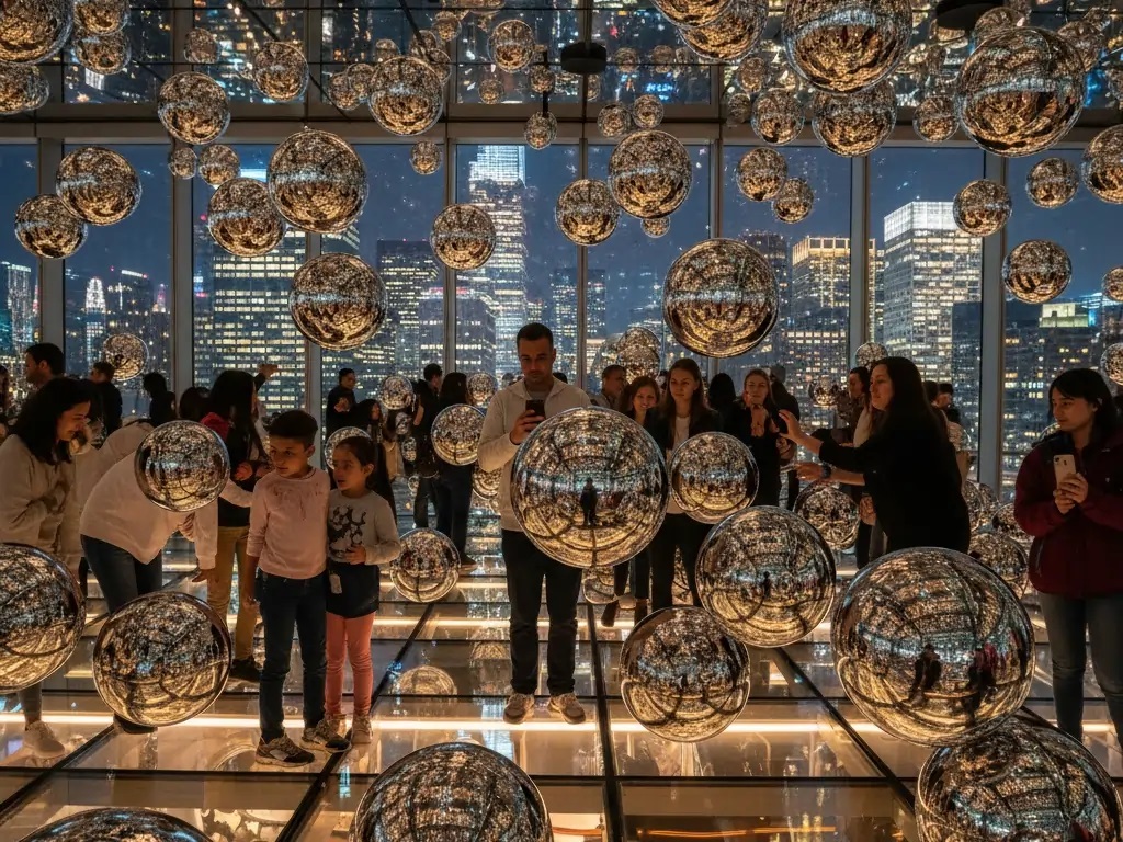 Step into Affinity, a room filled with reflective silver balloons that spark curiosity and playfulness. Then head to the open-air terrace on the 93rd floor for panoramic city views stretching across the skyline.